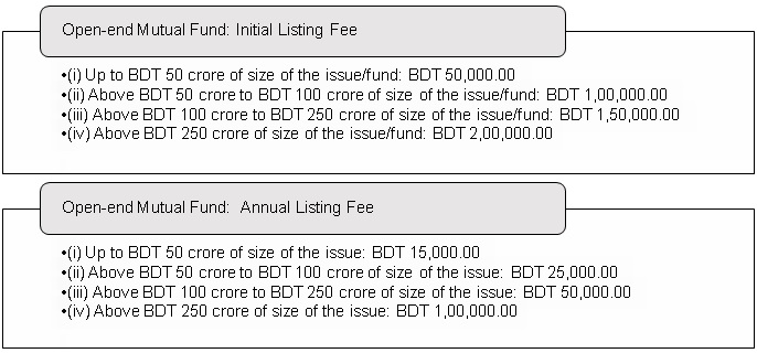 -Provided that initial listing fee shall not be imposed for existing funds (transferred as directed by the Bangladesh Securities and Exchange Commission) before these regulations come into force.